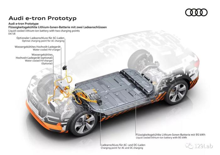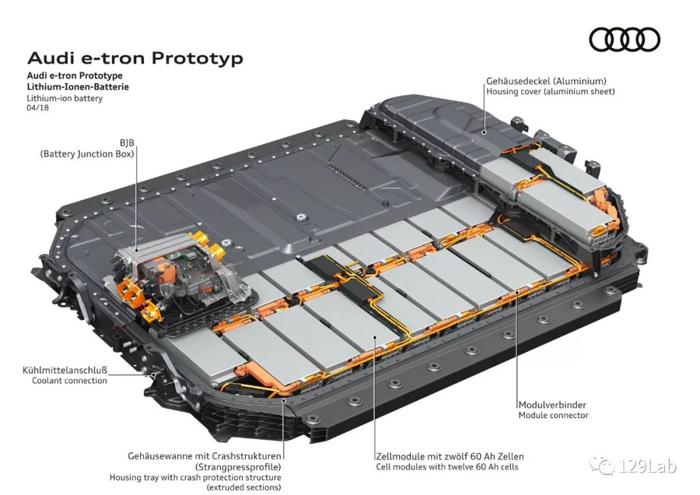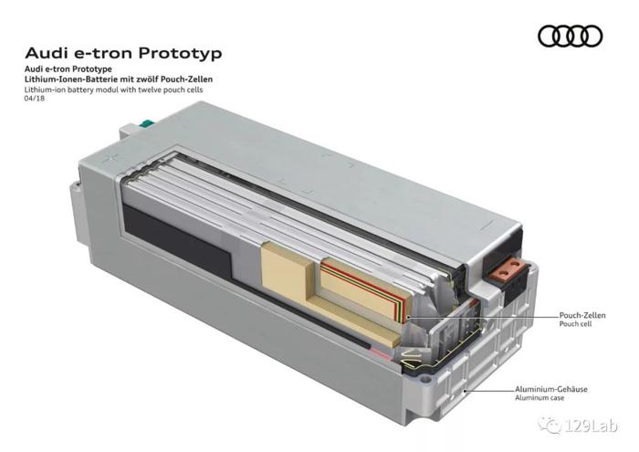 前面提到I-Pace和e-tron都是采用LG的软包模组,32个模组,电量一个90度电58Ah电芯,一个95度电60ah电芯,很容易推测两个的模组尺寸,电芯容量应该都是接近或者甚至一样的,电芯测试方法不一样,得到的电芯容量也会有差异,大胆推测两家的模组一毛一样。