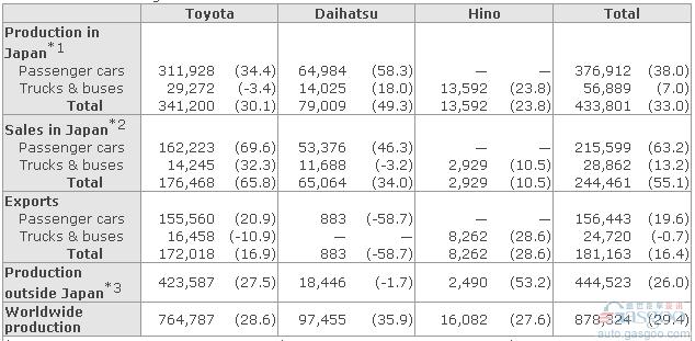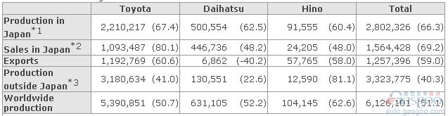 丰田7月份878,324辆产量中,本土产量为433,801辆,同比增长33.0%;海外产量为444,523辆,同比增长26.0%。1月至7月,丰田在日本本土产量同比增长66.3%至2,802,326辆;海外产量同比增长40.3%至3,323,775辆。