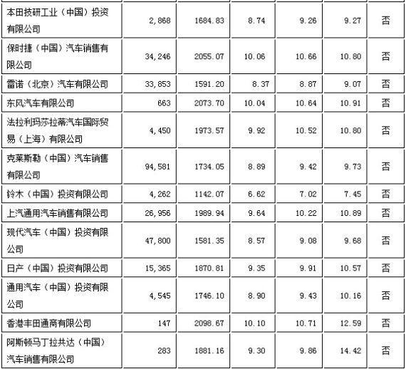 克莱斯勒中国、通用中国、日产中国、本田中国、雷诺(北京)等13家进口乘用车企业平均燃料消耗量不达标。
