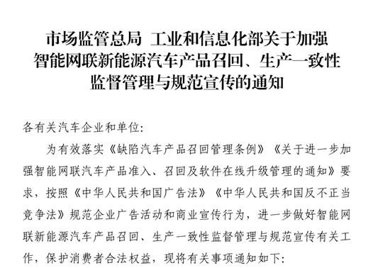 日前,市场监管总局会同工业和信息化部研究起草了《市场监管总局 工业和信息化部关于加强智能网联新能源汽车产品召回、生产一致性监督管理与规范宣传的通知(征求意见稿)》,并向社会公开征求意见,反馈截止日期为2025年9月15日。...[详细]