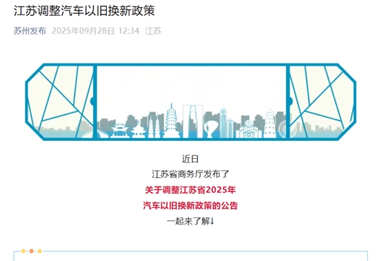 9月28日,据“苏州发布”公众号显示,根据《江苏省发展改革委 省财政厅关于2025年加力扩围实施大规模设备更新和消费品以旧换新政策的通知》中“消费品以旧换新资金实行限额管理、资格调控”相关要求,经商省有关部门同意,现对2025年汽车以旧换新政策进行调整。...[详细]