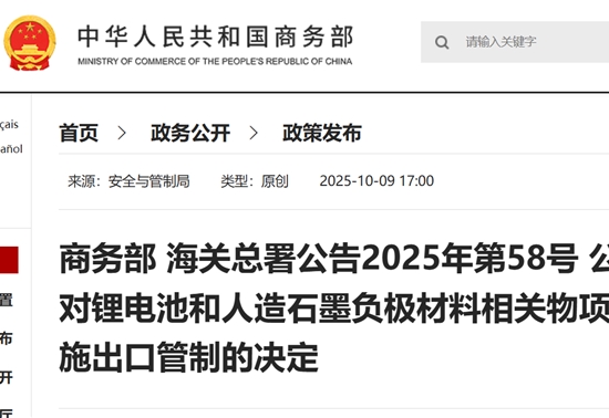 10月9日,中国商务部与海关总署正式发布联合公告,宣布为维护国家安全与利益、履行防扩散等国际义务,将自2025年11月8日起,对部分锂电池、关键正负极材料及其制造设备与技术实施出口管制。...[详细]