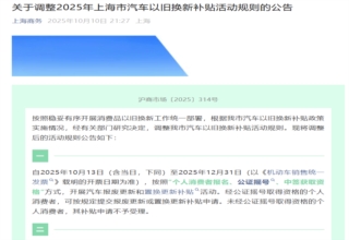 10月11日消息,据“上海商务”公众号消息,按照稳妥有序开展消费品以旧换新工作统一部署,根据上海市汽车以旧换新补贴政策实施情况,经有关部门研究决定,调整我市汽车以旧换新补贴活动规则。...[详细]