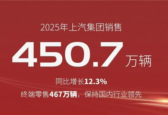 上汽集团公布的2025年销售数据显示,全年销售整车450.7万辆,同比增长12.3%...[详细]
