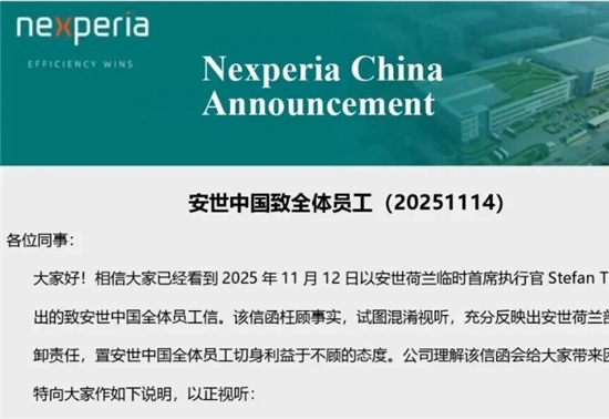 2025年11月14日,安世半导体(中国)有限公司向其全体员工发布公开信,正式回应此前安世荷兰临时首席执行官Stefan Tilger的致信内容。安世中国在信中指责荷兰部分管理层“ ...[详细]