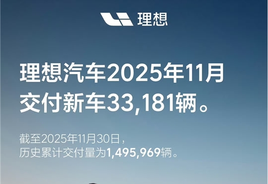 截至2025年11月30日,理想汽车历史累计交付量为1,495,969辆。