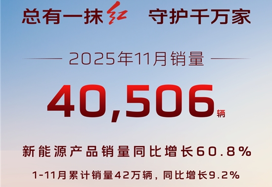 今年1至11月,红旗累计销量突破42万辆,同比增长9.2%,同比增长态势稳健。