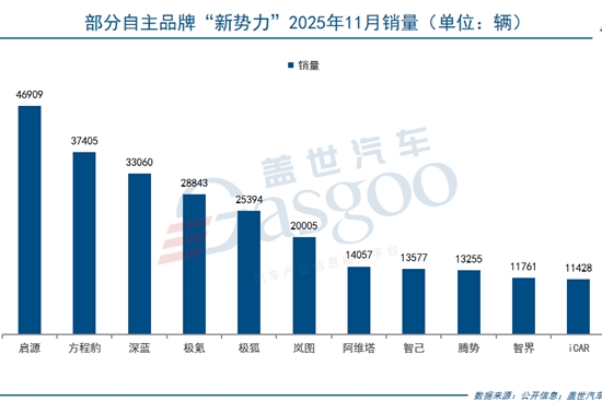 深蓝汽车已连续三个月稳居3万辆以上区间,1~11 月累计同比增长 45.7%。