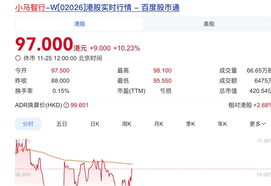 11月25日,小马智行-W(HK02026)在港股市场表现强劲,盘中涨幅一度超过10%,最终收涨9.32%,报96.2港元/股,整体市值涨至417亿港元。其美股在美东时间11月24日以12.51%的 ...[详细]