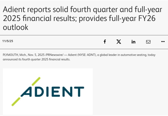 近期,李尔公司发布2025年第四季度及全年财报,数据显示,李尔第四季度营收实现同比增长,全年创下运营表现新纪录,调整后每股收益更是实现连续第五年增长。