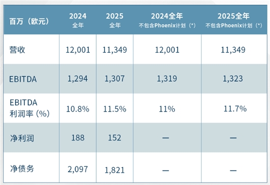 2025财年:销售额保持为910亿欧元,息税前利润率约2%,低于预期。