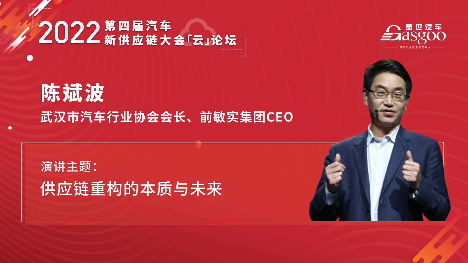 2022第四届汽车新供应链大会-云论坛武汉汽车行业协会会长、前敏实集团CEO 陈斌波:供应链重构的本质与未来...[详细]