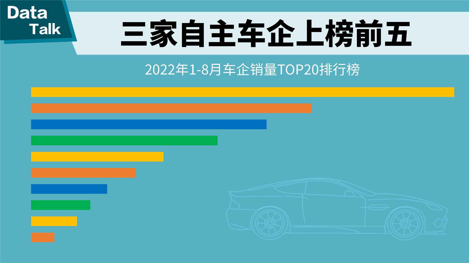 2022年1-8月车企销量TOP20排行榜出炉!三家自主车企上榜前五...[详细]