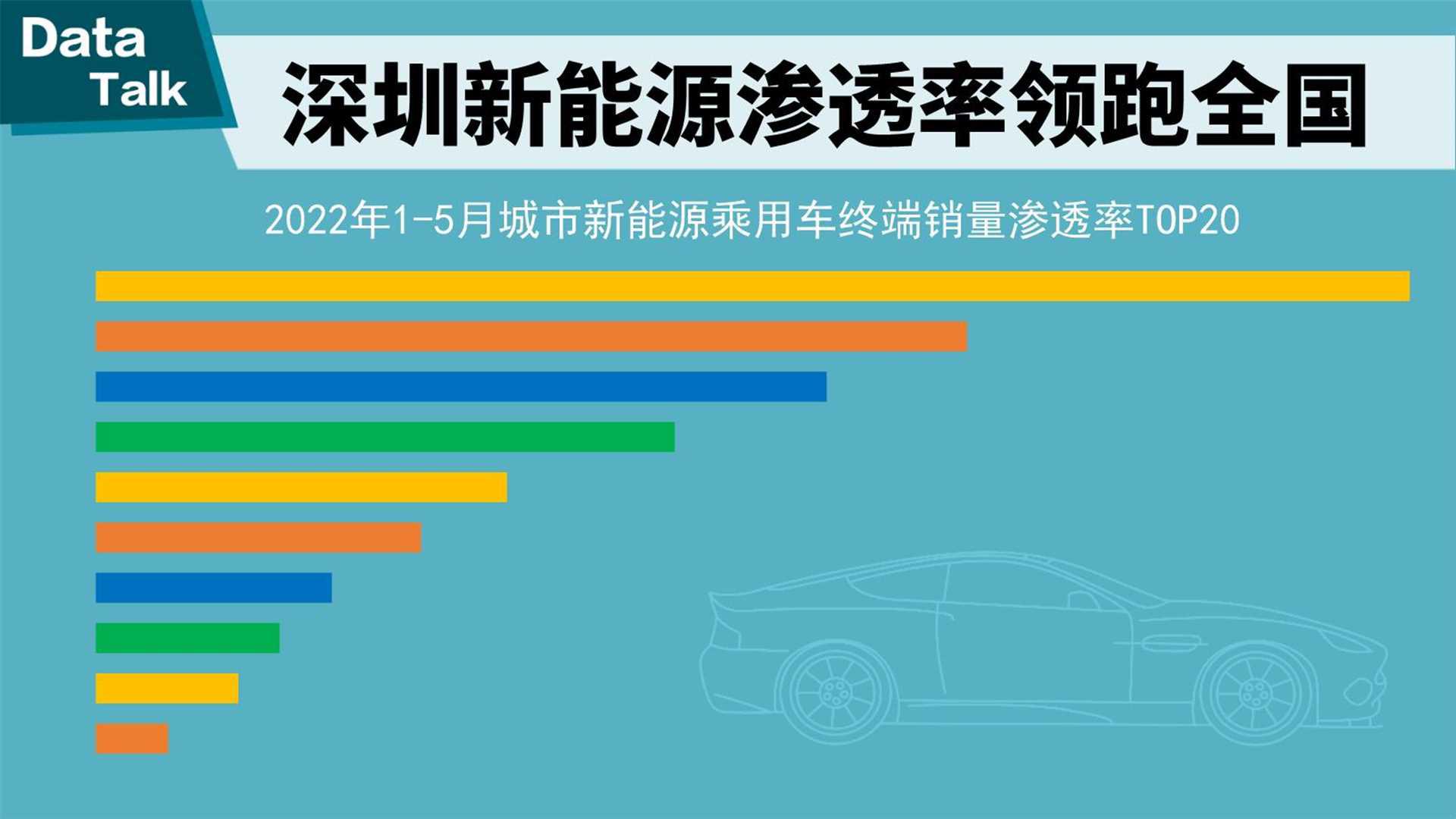 2022年1-5月城市新能源乘用车终端销量渗透率TOP20榜,深圳新能源渗透率领跑全国!...[详细]