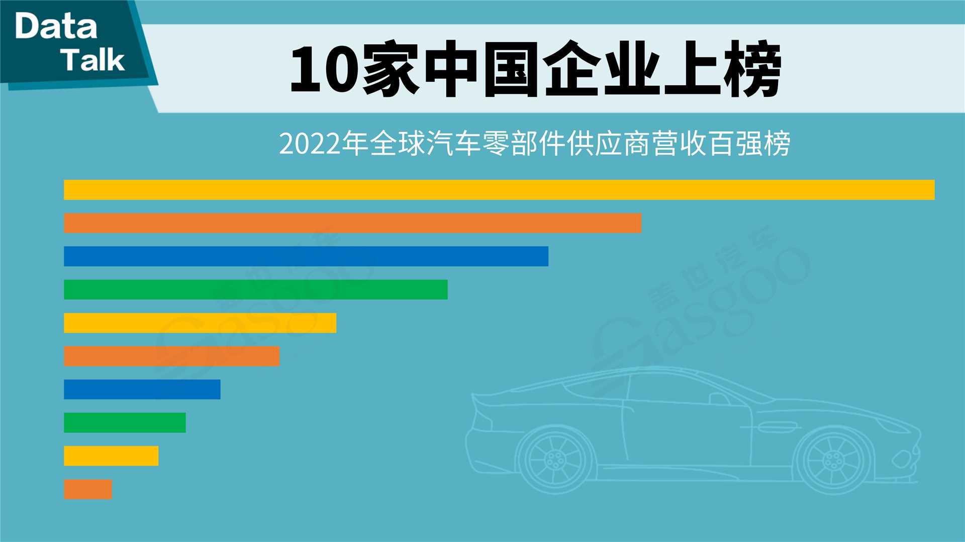2022年全球汽车零部件供应商营收百强榜;10家中国企业上榜!根据最新榜单,前5名仍旧是博世、电装、采埃孚、麦格纳...[详细]