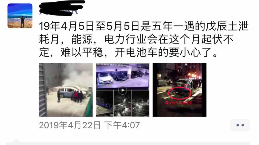 2019年4月5日至5月5日是五年一遇的戊辰土泄耗月,能源、电力行业会爱这个月起伏不定,难以平稳,开电池车的要小心了。这是不久前特斯拉、蔚来、比亚迪相继发生燃烧事件后,一位朋友的朋友圈文字。