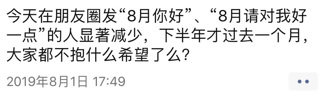 “下半年才过去一个月,大家都不抱什么希望了么?”这是朋友圈令人振聋发聩的反问——有人说,上半年伤了所有人的心,持续的负增长令大家普遍对下半年失去了信心,很难再激起美好的期待。