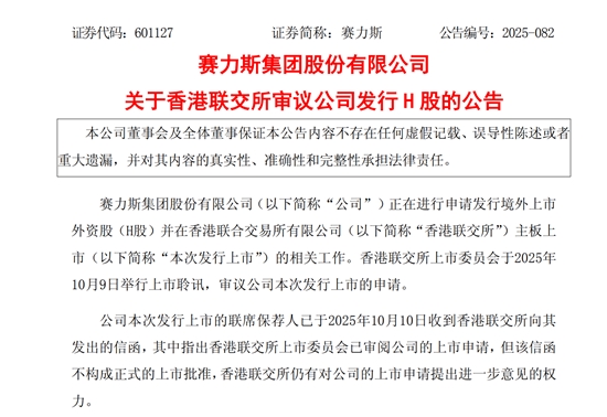 10月10日晚,赛力斯发布公告称,正在进行申请发行境外上市外资股(H股)并在香港联交所主板上市的相关工作。香港...[详细]