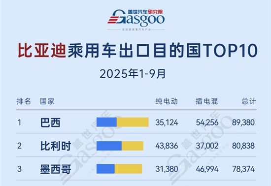 根据盖世汽车研究院最新数据,2025年1-9月比亚迪乘用车出口延续高位运行态势,战略重心仍是墨西哥、巴西、欧洲和...[详细]