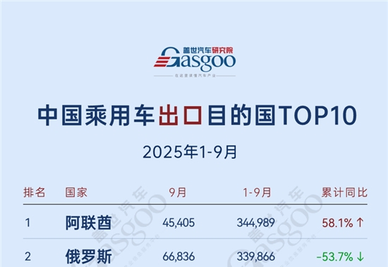 根据盖世汽车研究院数据,2025年1-9月,中国乘用车出口继续保持强劲增长势头,目的地市场呈现出明显的多极化格局...[详细]