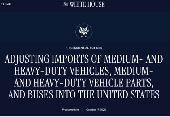 聚焦·产经特朗普签署行政令,对进口中重型卡车征收25%关税当地时间10月17日,美国总统特朗普签署行政令,自11月1...[详细]