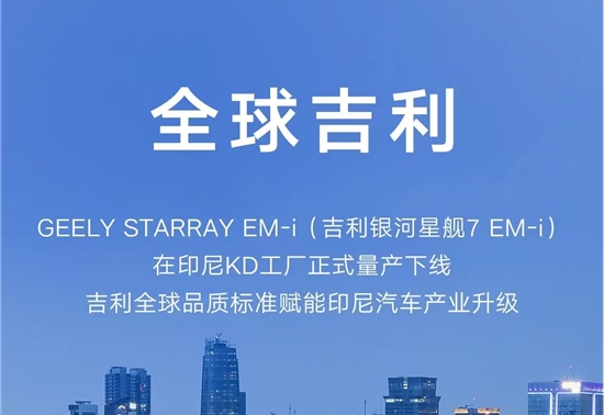 吉利汽车集团于10月10日宣布,旗下车型吉利银河星舰7 EM-i(GEELY STARRAY EM-i)已于2025年9月底在印度尼西亚Pur...[详细]