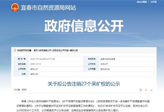 江特电机旗下江西省宜丰县狮子岭矿区含锂瓷石矿,是本次公示拟注销的27个采矿权之一。近日,江西省宜春市自然资源...[详细]