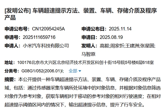 今日,小米汽车科技有限公司申请的一项名为“车辆超速提示方法、装置、车辆、存储介质及程序产品”的专利公布。该...[详细]