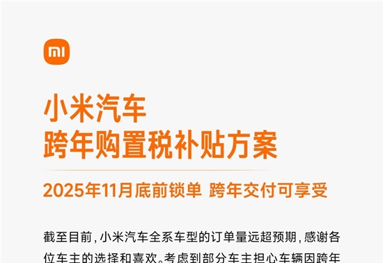 10月24日,小米汽车针对车主关注的跨年交付购置税优惠问题,正式推出跨年购置税补贴方案,最高补贴金额达1.5万元...[详细]