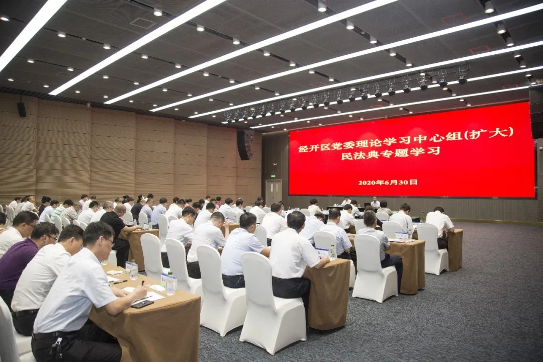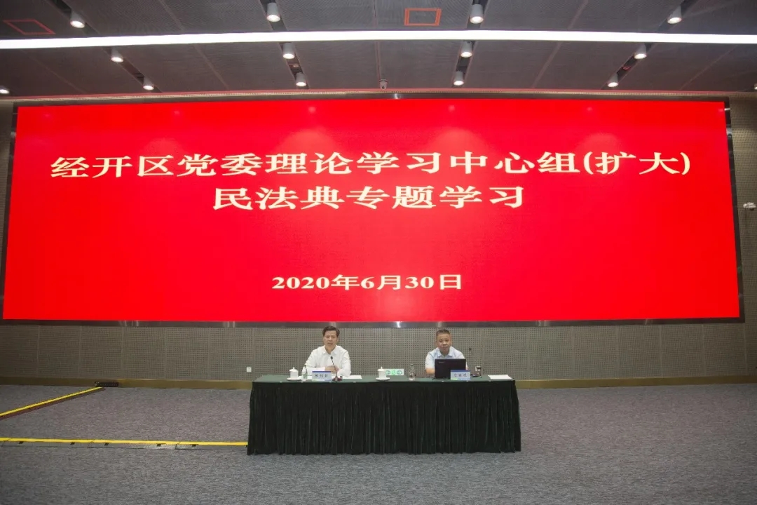 6月30日,天津经开区党委理论学习中心组(扩大)学习活动在投资服务中心举行,经开区党委书记、管委会主任郑伟铭主持会议,天津市委党校安连成教授以《民法典的时代精神与中国特色》作专题报告。经开区党委、管委会领导班子成员参加学习。