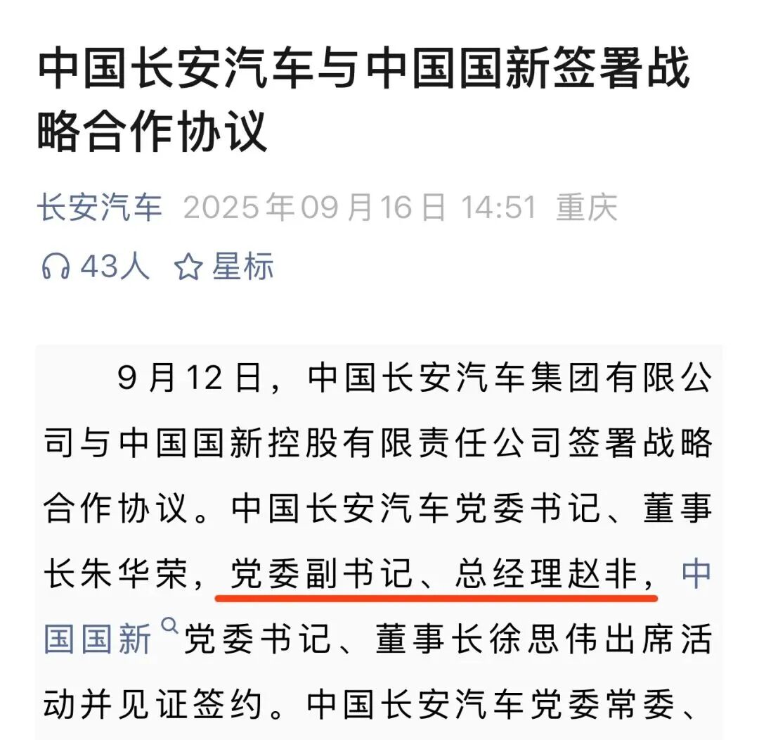 距离新央企“中国长安汽车集团”确立新领导班子已有两个月,近日一次重要合作协议签约活动上,朱华荣、赵非共同出席。