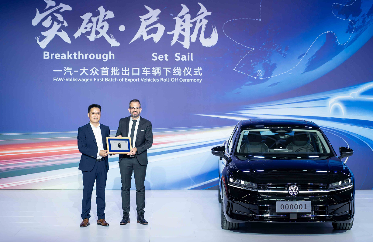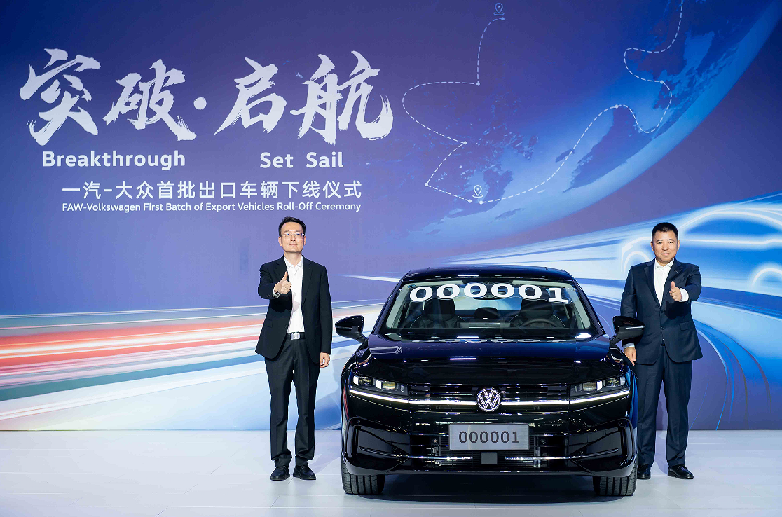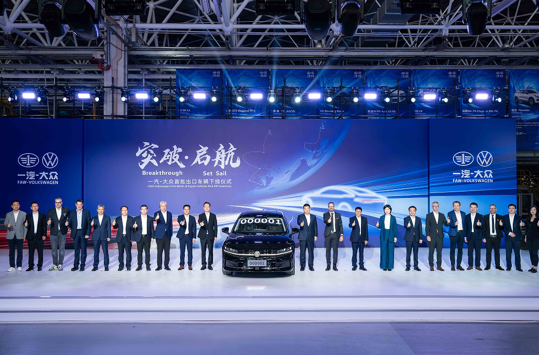 9月23日,一汽-大众在长春基地举行首批出口车辆下线仪式,554辆迈腾、速腾将于9月28日从上海港发出,11月份在中东上市。长春市委副书记、市长顾刚,中国一汽总经理、党委副书记刘亦功,副总经理兼一汽-大众总经理陈彬,大众汽车品牌国际销售高级副总裁Michael Mayer,大众汽车集团(中国)销售与售后副总裁Marcus Butros,大众汽车品牌中东总经理Matthias Ziegler,一汽-大众党委班子及经管会成员,海外客户代表等共同出席仪式,见证这一具有里程碑意义的时刻。