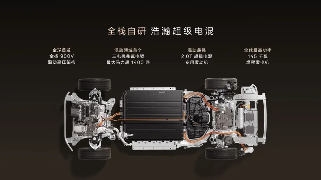 其搭载的全球首套三电机兆瓦级混动电驱系统,总功率突破1000千瓦,综合输出超1400匹马力,相当于三台传统V12发动机,零百加速全系3秒级,足以使之成为全球加速最快的旗舰SUV;
