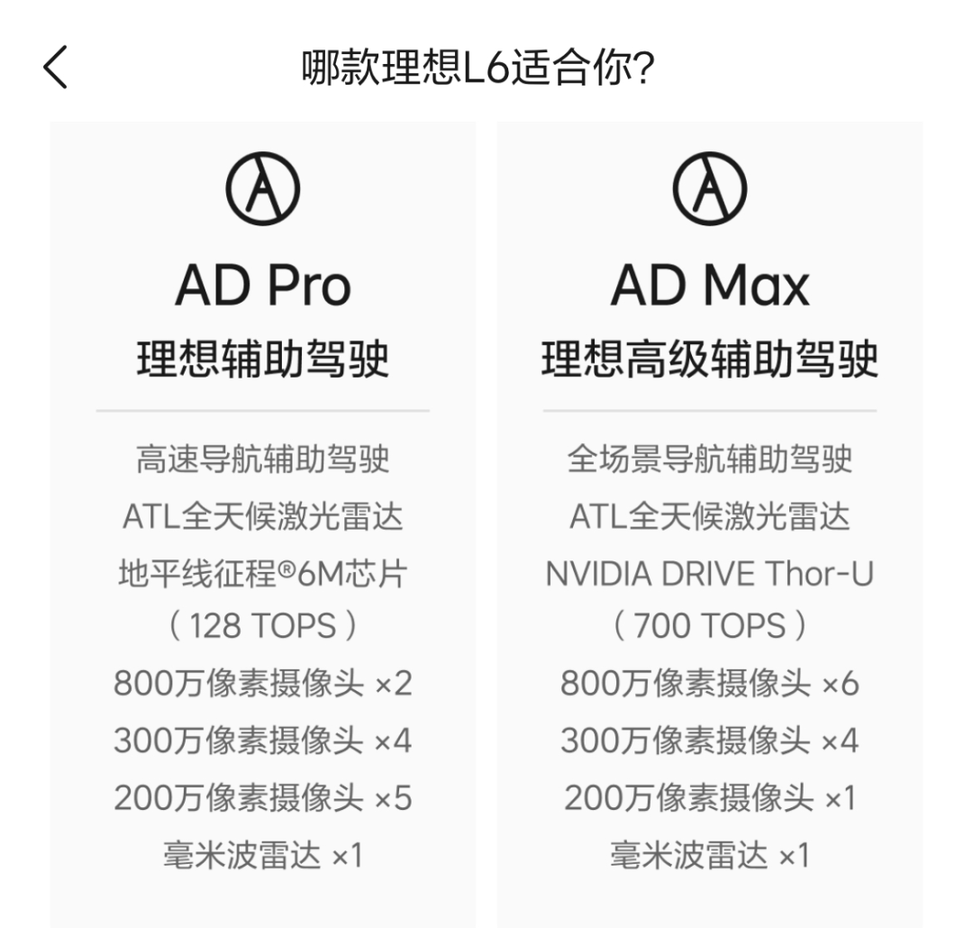 也是基于此逻辑,刚刚上市的理想i6采取了跟L6不同的策略,标配AD Max。