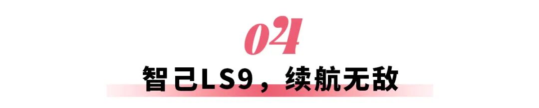 续航则是智己LS9增程版的核心亮点之一,将搭载“恒星”超级增程系统。搭载“恒星”超级增程系统的智己LS6增程版,纯电续航可达450km,预计LS9增程版的纯电续航将超400km,届时将远超目前市面上的同级车型,作为对比,理想L9的纯电续航为280km,问界M9增程版的最长纯电续航为290km。此外,智己LS9的综合续航超1500km,支持800V快充,15分钟可补充300km续航。