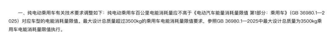 按照新规,纯电车的百公里电耗不能高于GB 36980.1—2025中对应车型的电耗限值。