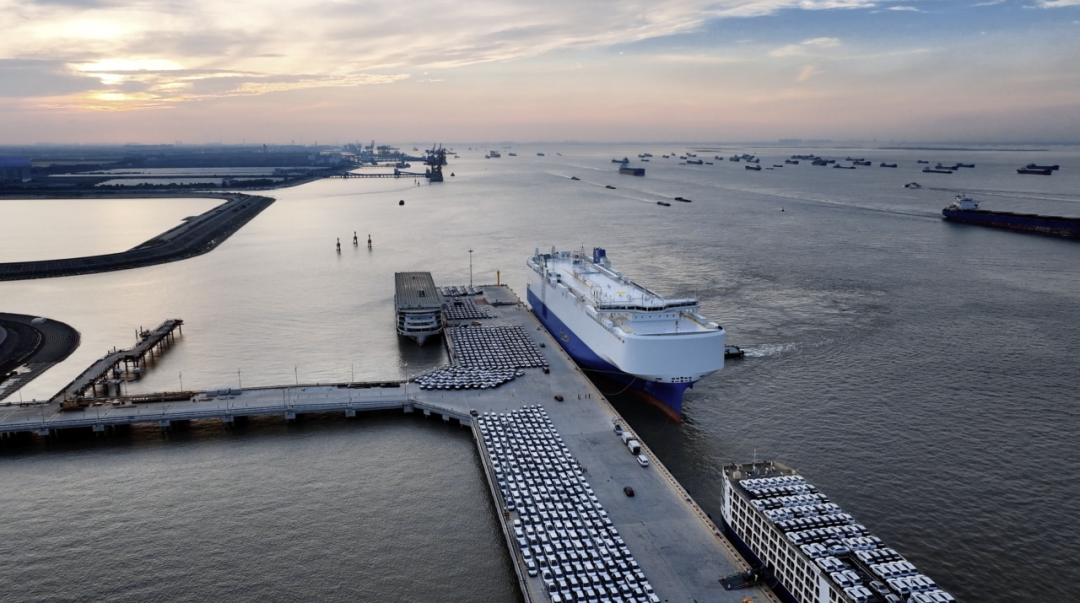 上海海通国际汽车码头,奇瑞出口车辆整装待发;图片来源:奇瑞汽车