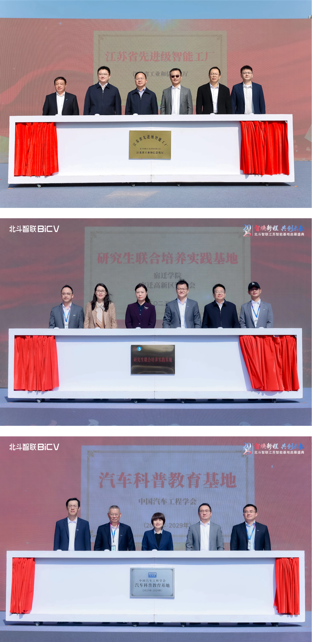 启幕盛典现场,“江苏省先进级智能工厂”“研究生联合培养实践基地”“汽车科普教育基地” 三大荣誉正式揭牌,标志着基地不仅是“智能制造标杆”,更成为“产学研融合平台”与“汽车科普窗口”。