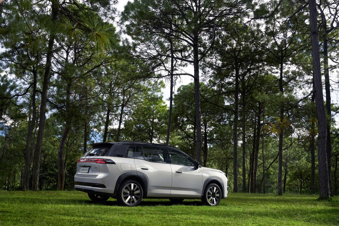车尾部分,新车独创双层羽翼贯穿式尾灯拓宽视觉张力,饱满曲面塑造“最美车臀”形象。电动尾门支持82度大角度开启,416L后备箱可轻松容纳8个20寸行李箱。