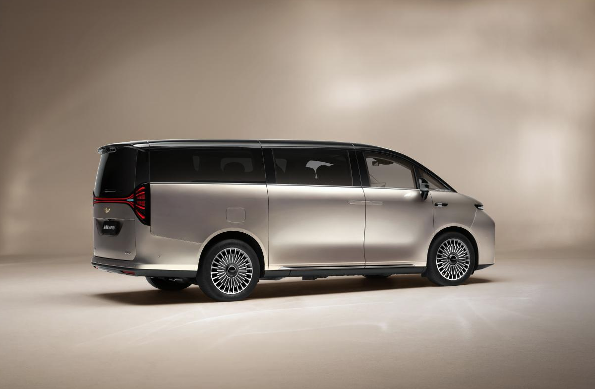 此次释出的官图中,银河V900精准诠释了高端MPV应有的豪华格调。首次采用的专属“天马”车标,将“飞翼”与“天马”的意象融入设计,寓意着“速度、力量、自由、正义”,也让人联想到经典豪华品牌标识,直观凸显了新车的高端定位。