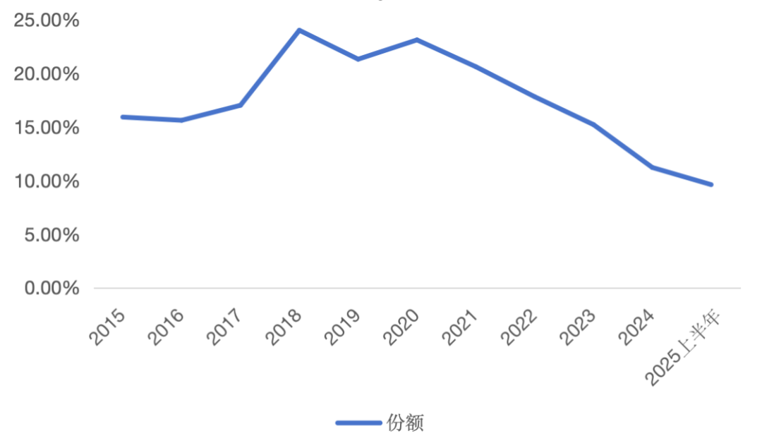 数据显示,2020年日本汽车在中国市场的市占率为23.1%、2021年为20.6%、2022年为17.8%,到了2024年只剩下11.2%。