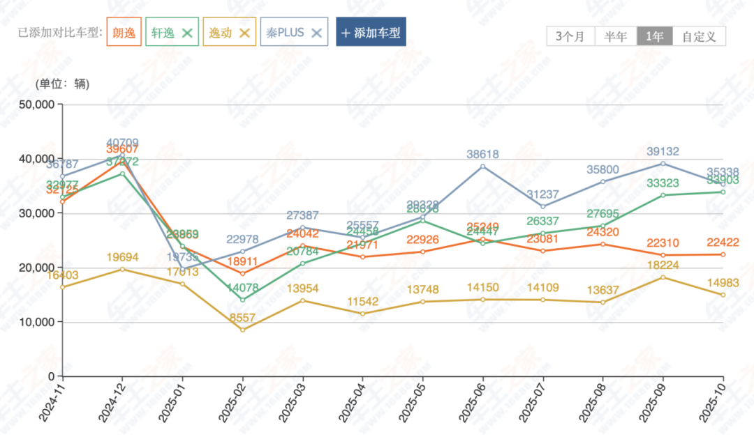它的燃油车老对手--日产轩逸,今年一共拿了6次A级轿车月度销量冠军,10月销量3.4万辆;它的新能源车对手就更多了,秦PLUS、小鹏MONA M03、零跑B01等都是表现不俗的对手,后续随着新能源的大势更趋,还不知道会突然蹦出来哪几款更重磅的竞品。
