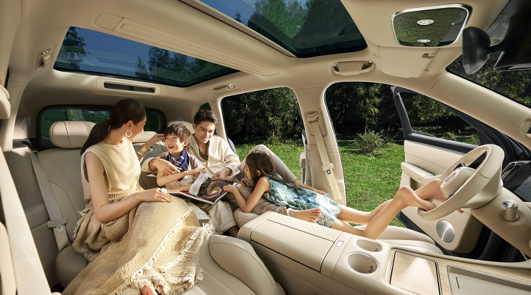 车辆以“尊四座、大五座、享六座”的灵活布局,精准覆盖商务接待、日常通勤与家庭用车等多元出行场景。全系标配舒云座椅,环抱式硬质包围兼具舒适与精致,搭配细腻Nappa真皮,以及奢享零重力座椅等,彰显品位与格调,让每一段旅程都成为尊享、静谧且安心的头等舱之旅。特别设计的可升降办公桌板,配合车内多屏互联系统,实现移动办公场景的无缝衔接,让商务出行既从容又高效。全系标配的HarmonyOS 4智能座舱与华为乾崑智驾ADS 4辅助驾驶系统,更以领先智能科技为每一次出行保驾护航。