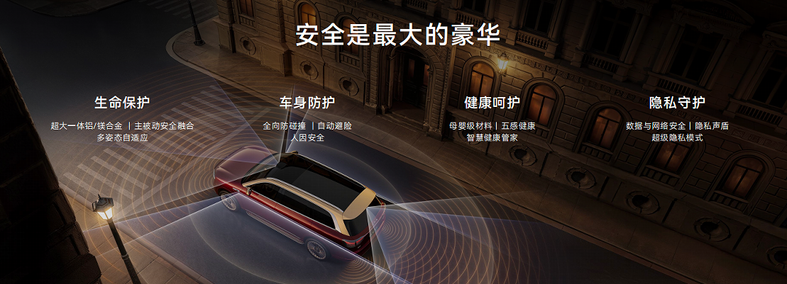 在生命保护方面,通过利于利用航空级铝合金材料和超大一体压铸镁合金材料,实现更轻质、更高强的安全车身结构,同时进一步融合主被动安全技术,能实现多姿态自适应防护;在车身防护方面,除了全向防碰撞能力,赛力斯还通过对车外环境的精准识别能力,实现了智能避险,另外通过引入人因安全,整车能在人机共驾中做出更智能的决策;在健康呵护方面,在母婴级用材和五感健康的基础上,问界持续升级座舱体验,打造更懂用户的“智慧健康管家”;在隐私呵护方面,问界进一步拓展数据防护的深度和范围,包括数据和网络的安全管控,全面保障用户与车辆的隐私及数据安全。