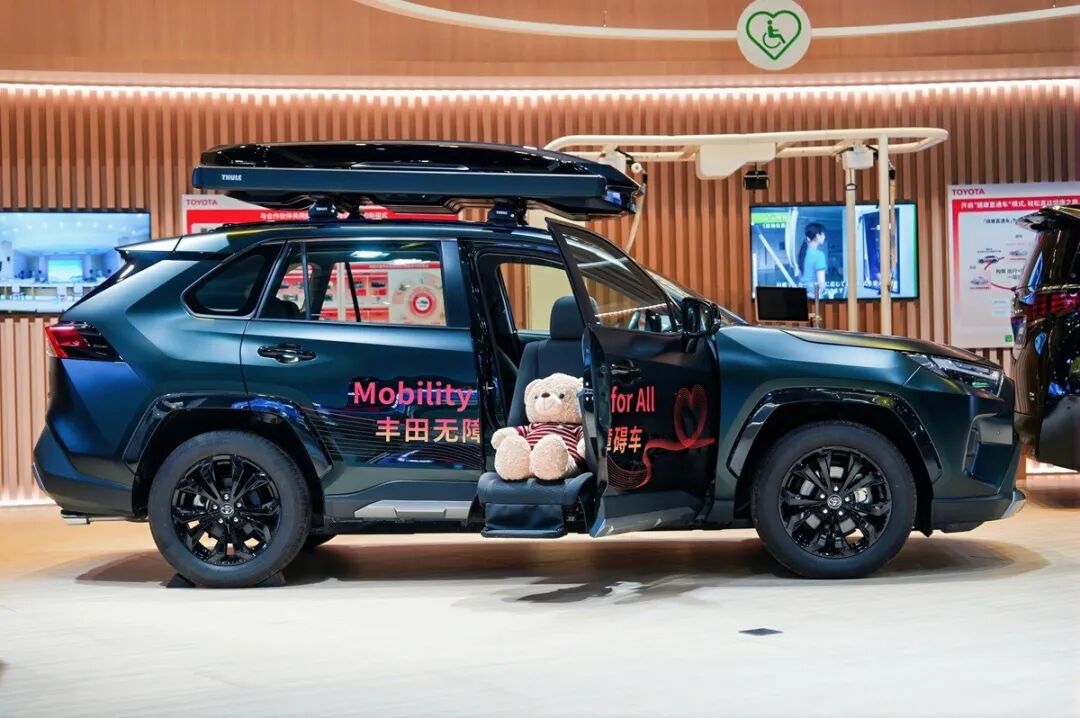 除了全新的埃尔法福祉版之外,本次出展的还有一台RAV4荣放。这两款福祉车都属于新型号,前者搭载电动升降福祉旋转座椅,目前已经进入上市准备阶段;后者驾驶位配有超薄升降旋转座椅,还处于试制车型阶段。