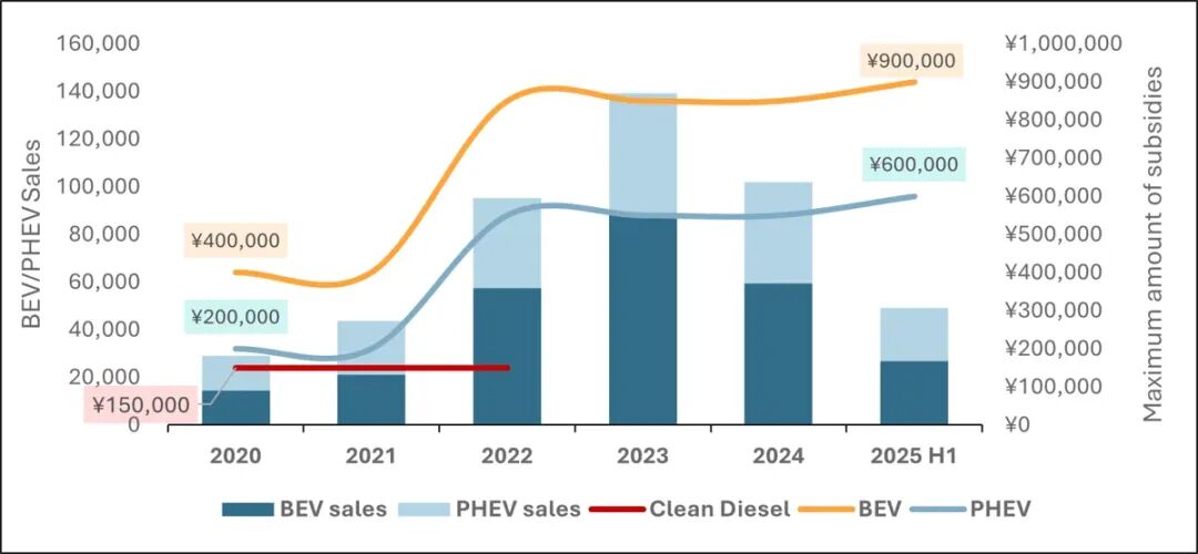 此外,日本政府在2024年4月重新调整了CEV(清洁能源汽车)补贴政策,对比亚迪更加不利。