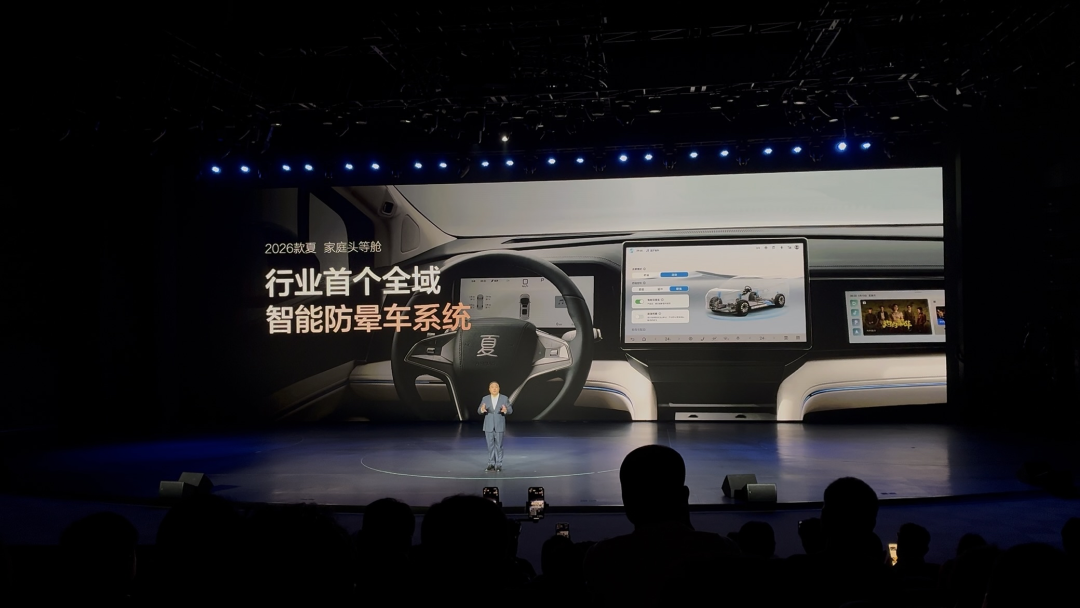 底盘配置上,2026款夏底盘依旧是前麦弗逊后多连杆的结构,但升级了可调软硬的云撵-C悬挂系统,并且还新卷出了智能防晕车的功能。