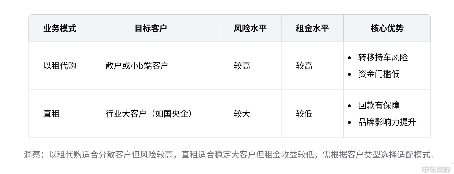 而开展租赁业务,车企能够将车辆资产牢牢握在自己手中,通过“以租代售”的模式控制风险,同时也能逐步构建起稳定的合作信任关系,为后续业务拓展奠定基础。