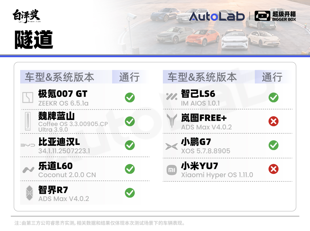 和以往遇大施工即宕机不同,这次九台车都通过了。