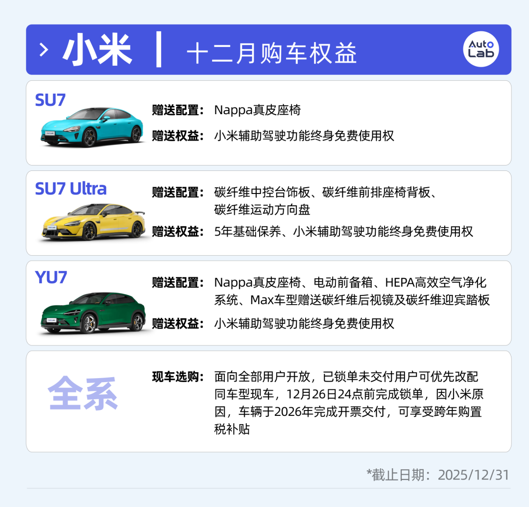 进入12月,车市画风突变。往年抢破头的“年底冲量”,今年变成了一场静悄悄的“权益暗战”。 车企不再高举“直降XX万”的大旗,反而开始抠细节:送积分、保购置税、现车改配、盲盒抽奖……一套操作下来,仿佛在说:“降价?那多没技术含量。” 我们整理了本月各家车企公开的购车政策,供大家参考。